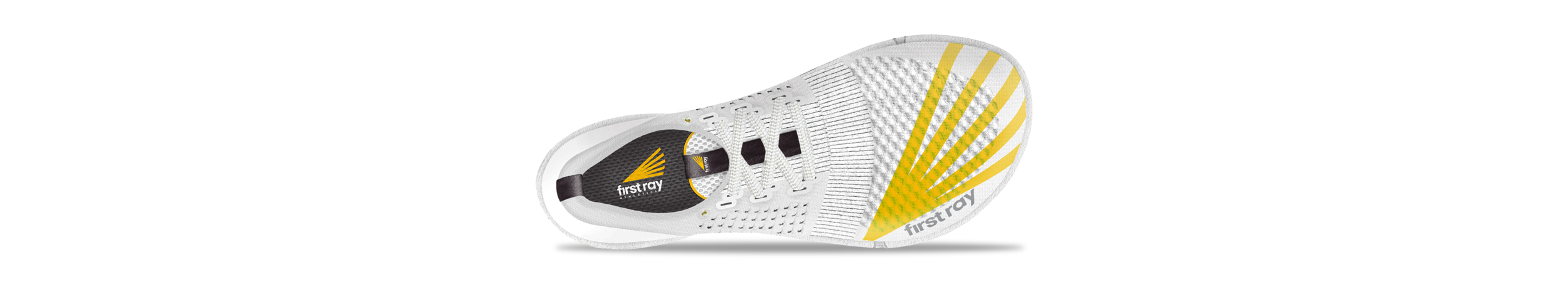 - This toes-up bias mitigates impact forces via pre-tensioning of the foot’s musculature. The tension also maintains the shoe's connection to the sole of your forefoot, enabling the use of just 3 lace crossings across the top of the shoe, and letting the forefoot’s long bones splay more freely side-to-side without impedance at the front of the shoe.